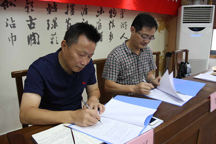 總經(jīng)理應(yīng)飛軍同志作為行政方首席代表與職工方首席代表李堅(jiān)同志簽署《2017年工資集體協(xié)議》和《女職工權(quán)益保護(hù)專項(xiàng)協(xié)議》