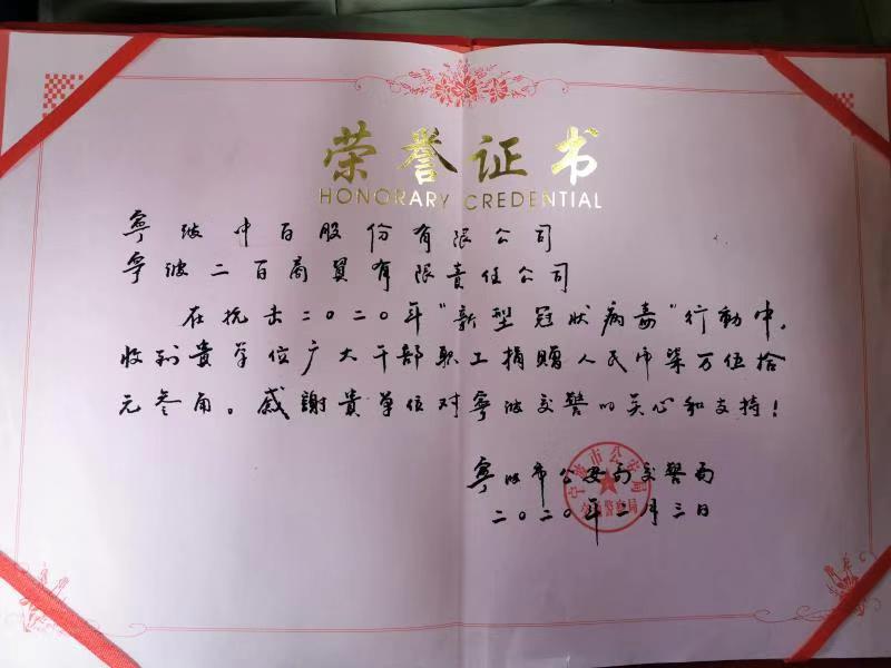 員工籌款捐贈寧波交警助力抗疫工作