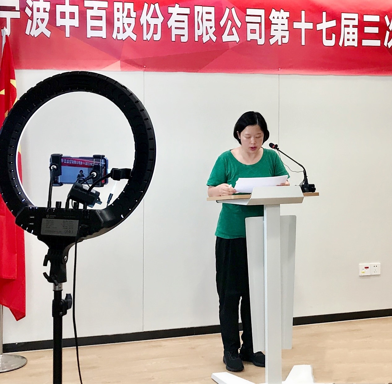 寧波中百股份有限公司第十七屆三次職工(會員)代表大會于2020728日在公司大會議室舉行,由于新冠肺炎疫情防控需要,本次會議采取線上線下結(jié)合形式召開。
